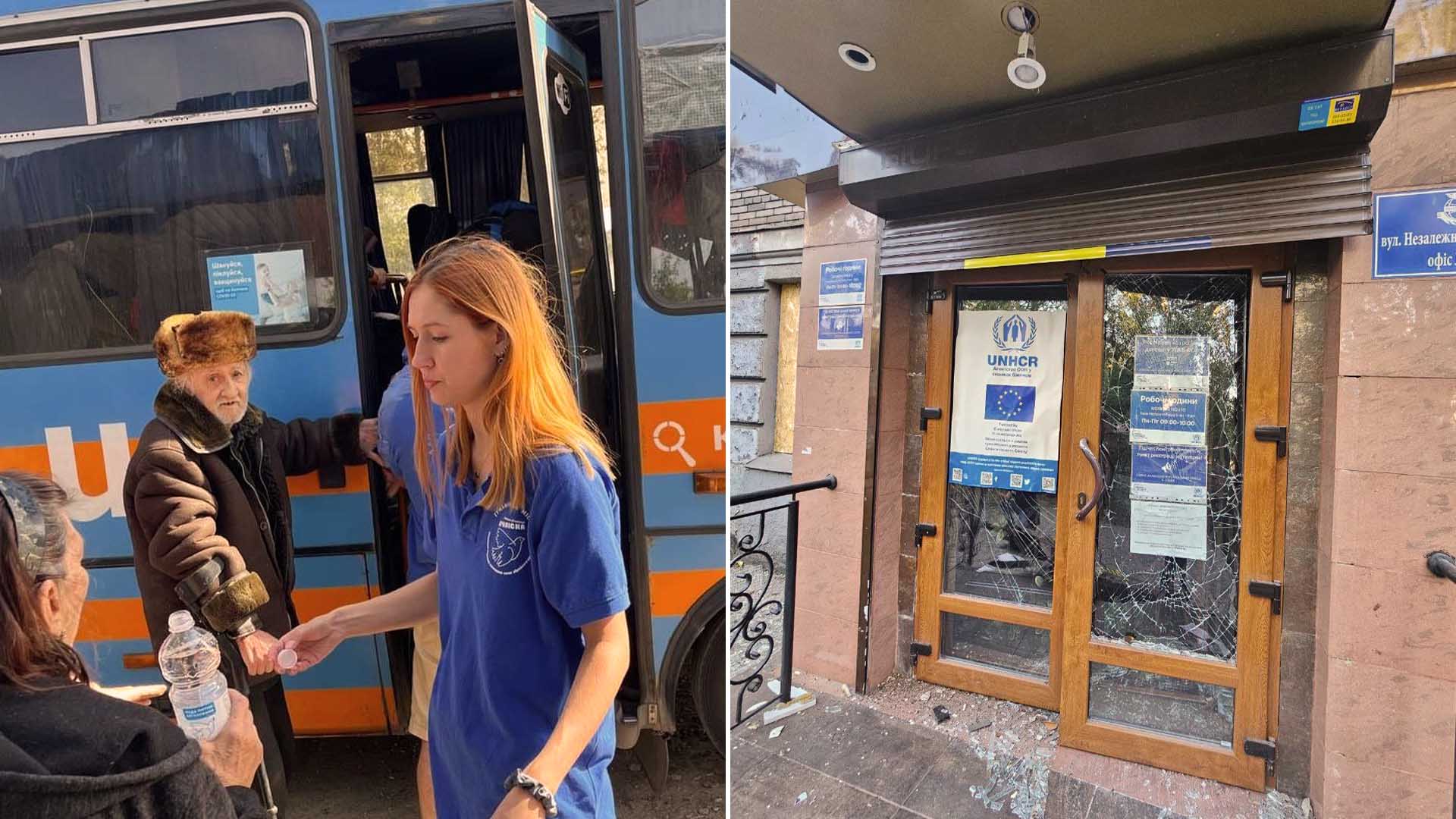 Inte heller hjälporganisationer skonas. De senaste veckorna har två av våra partnerorganisationer i Ukraina träffats vid attacker: en buss som Proliska använde för att evakuera människor från frontlinjen och ett kontor där Right to Protection delar ut kontantstöd.
