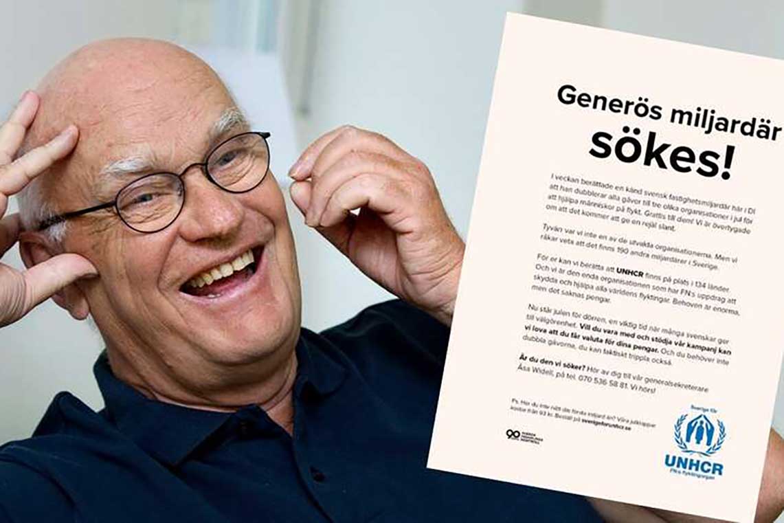 Fastighetsägaren Roger Akelius berättade i en kontaktannons att han dubblar alla gåvor som kommer in till julinsamlingen under november och december. Det betyder att din gåva gör ännu större skillnad och att dubbelt så många människor får hjälp under de kalla vintermånaderna.