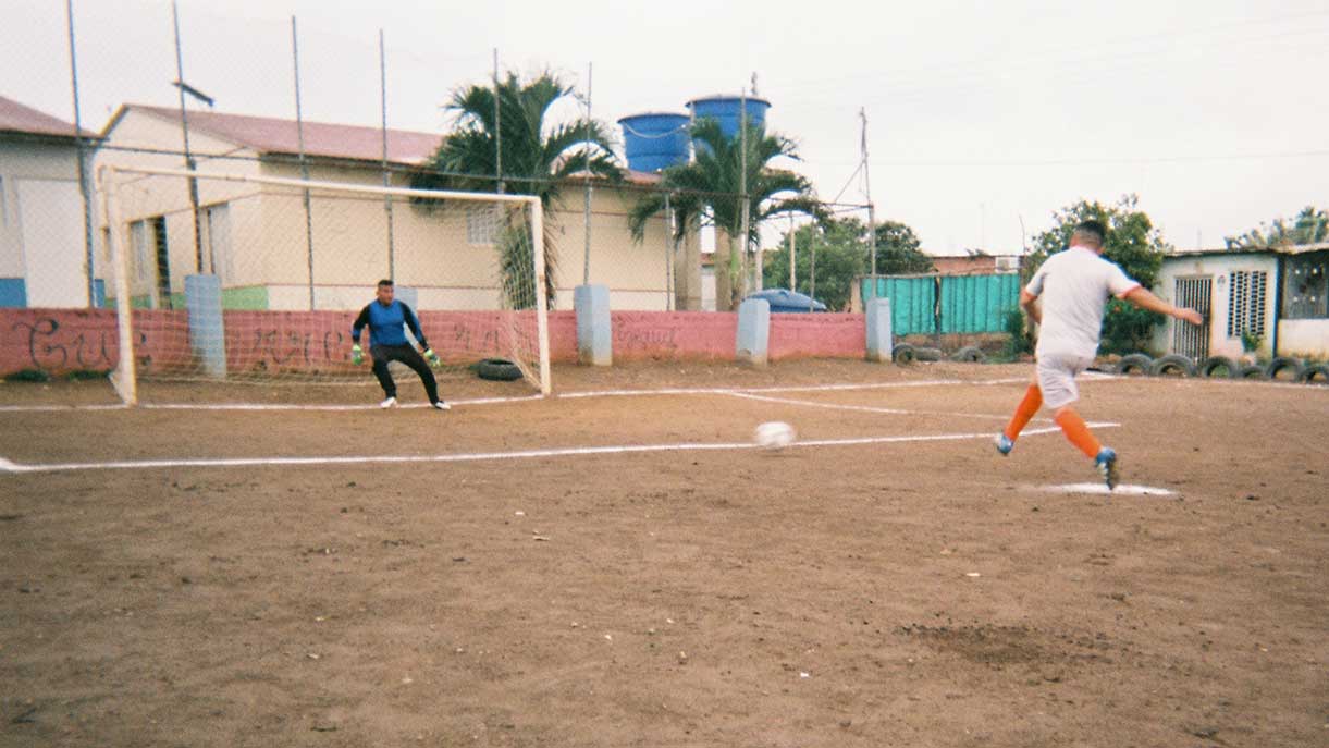 Fotboll är kung i Latinamerika. Människor på flykt som lever mitt i en kaotisk vardag känner stolthet. Spelet rensar tankar. ”Vi älskar fotboll”.