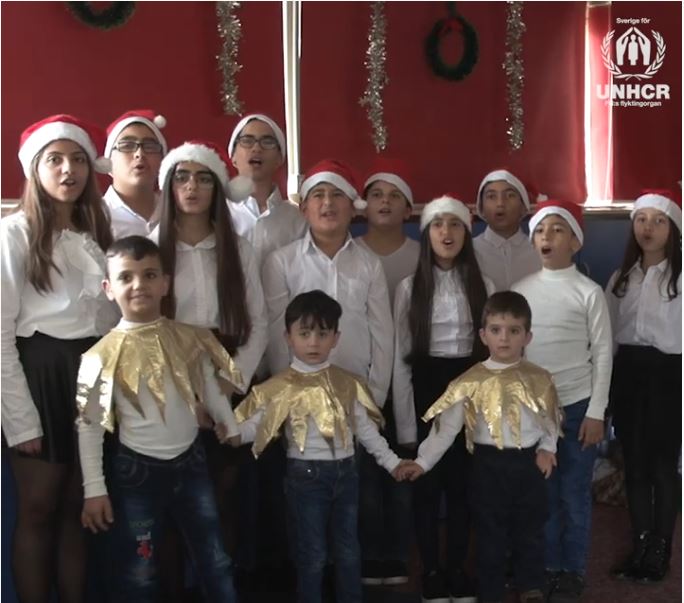 Som tack för att du bryr dig om barn och familjer som har tvingats på flykt, kommer en julhälsning från en barnkör i Libanon. God jul och gott nytt år.