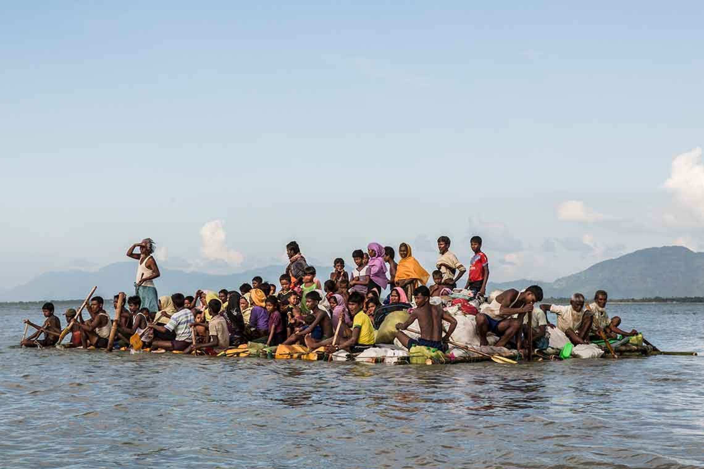 Med hjälp av paddlar gjorda av bambu och plastskräp klarade sig några flottar till Shahporir Dwip i Bangladesh, en resa på fyra timmar. Floden Naf som skiljer de två länderna är ungefär tre kilometer bred.