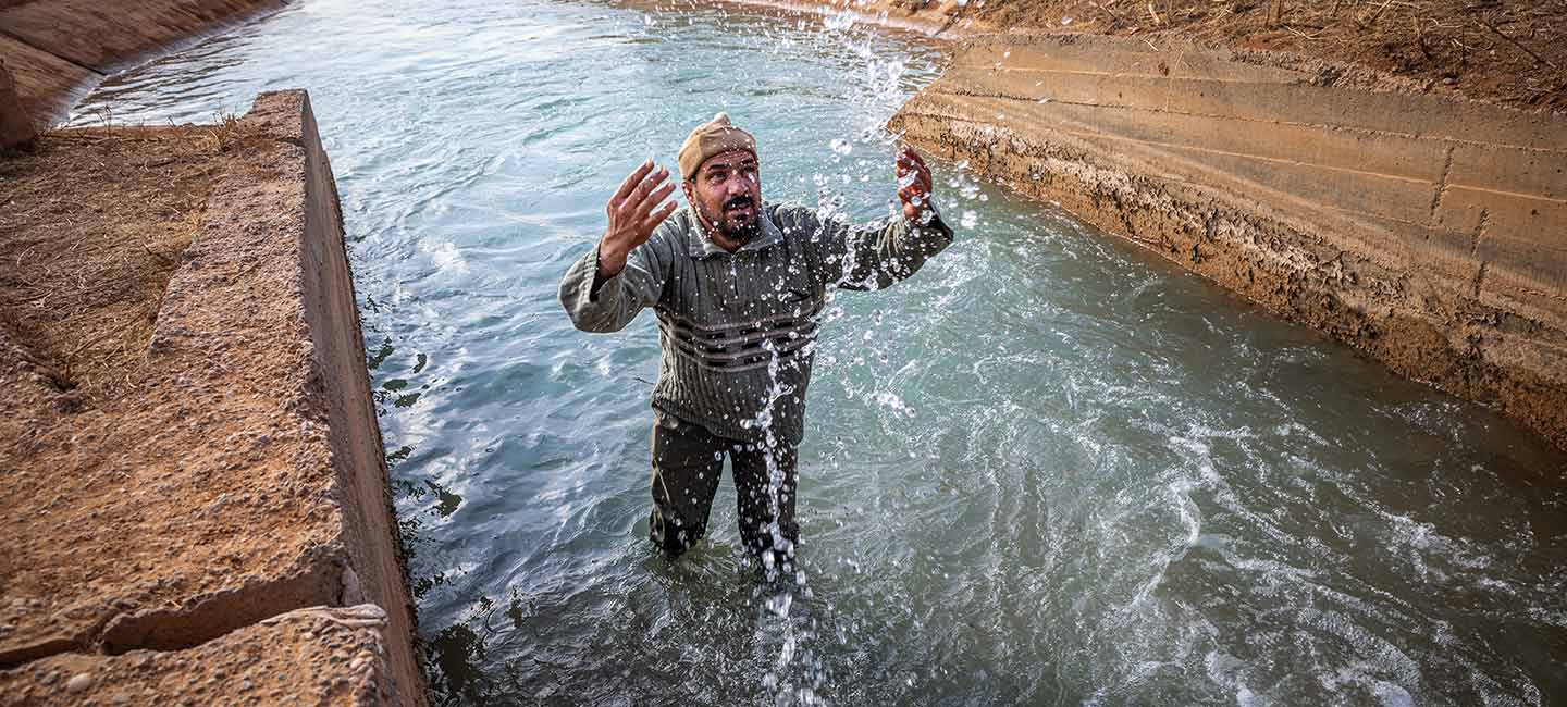 Äntligen vatten i kanalen! UNHCR har renoverat en kanal utanför Aleppo i Syrien. Den har varit obrukbar i nio år, nu kan marken brukas igen.