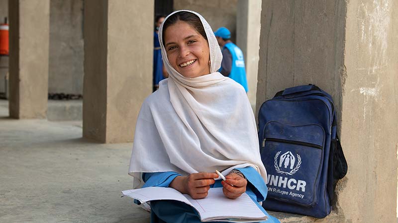En flicka på flykt från Afghanistan är lycklig över att få gå i skolan. Vill ni ge fler barn en chans att få en utbildning?